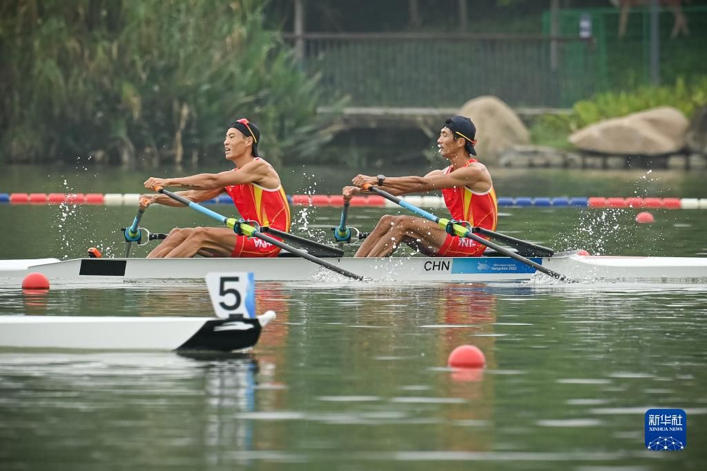On September 24, the men's lightweight double sculls competition kicked off on time, where Fan Junjie, a 2020 master's student at the School of Competitive Sports, WHSU, and Sun Man, a jointly train…