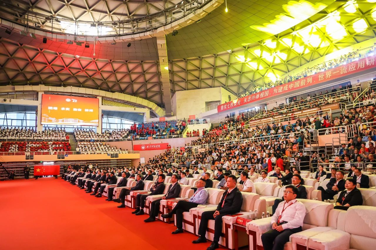 Over a span of seventy years, Wuhan Sports University (WHSU) has faced challenges head-on, the melodies never fading away; for seven decades, the torch of education has been passed on, guiding us in our unwavering journey forward. The 70th Anniversary High-Quality Development of Wuhan Sports University was held in the school's gymnasium on October 18, 2023.