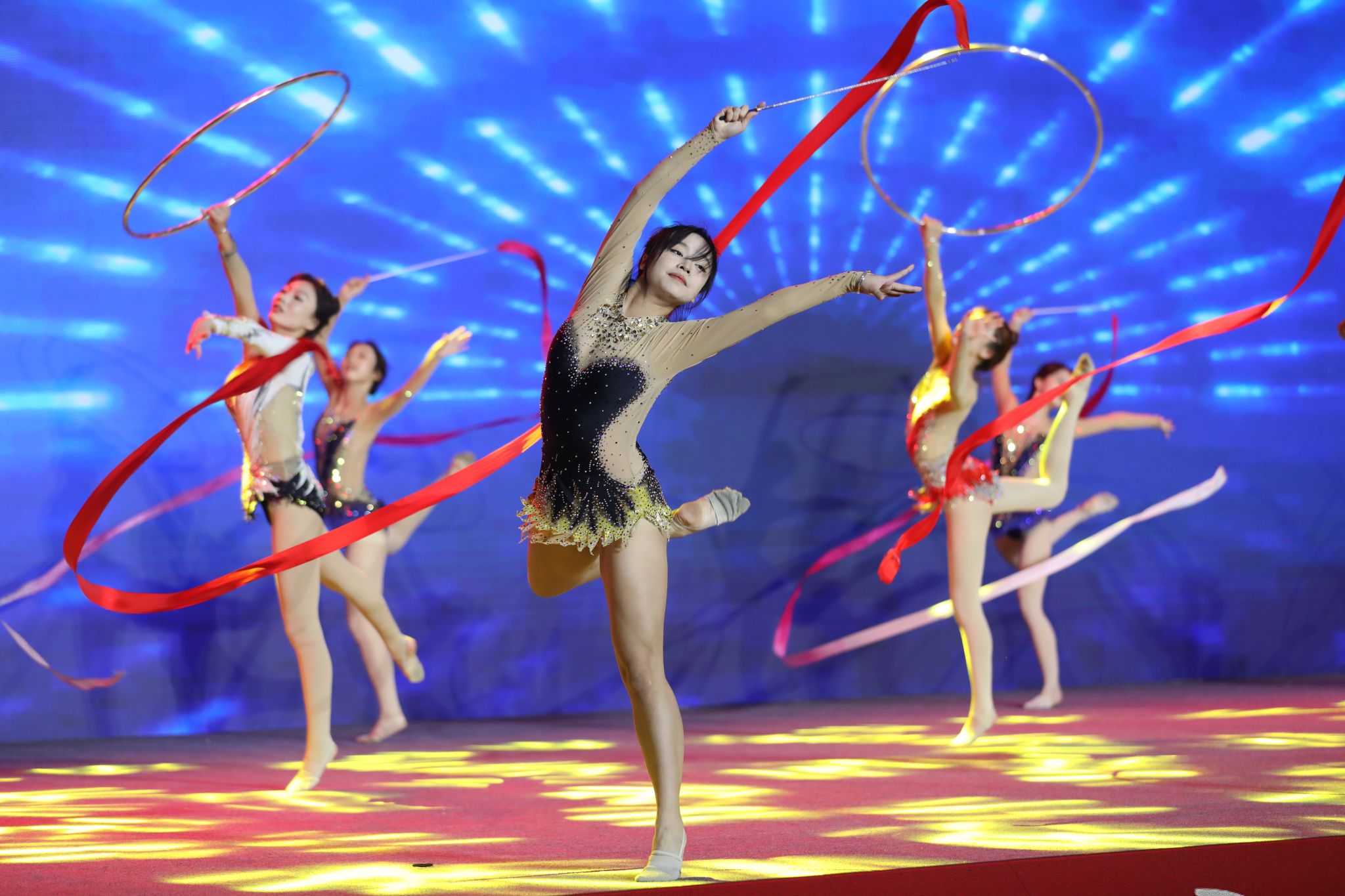 In the gymnasium, the gymnasium, a vibrant celebration unfolded as guests from both China and abroad came together with great enthusiasm, filling the atmosphere with a palpable sense of festivity. Suspended above the podium, a banner proudly displayed the message: "Continuing seven decades of glory, dedicated to advancing sports for the country, relentless pursuit of becoming a prominent, world-class applied research sports university in China!" – A striking banner encapsulates the distinct educational ethos and resolute academic objectives that have defined WHSU throughout its seven-decade history.