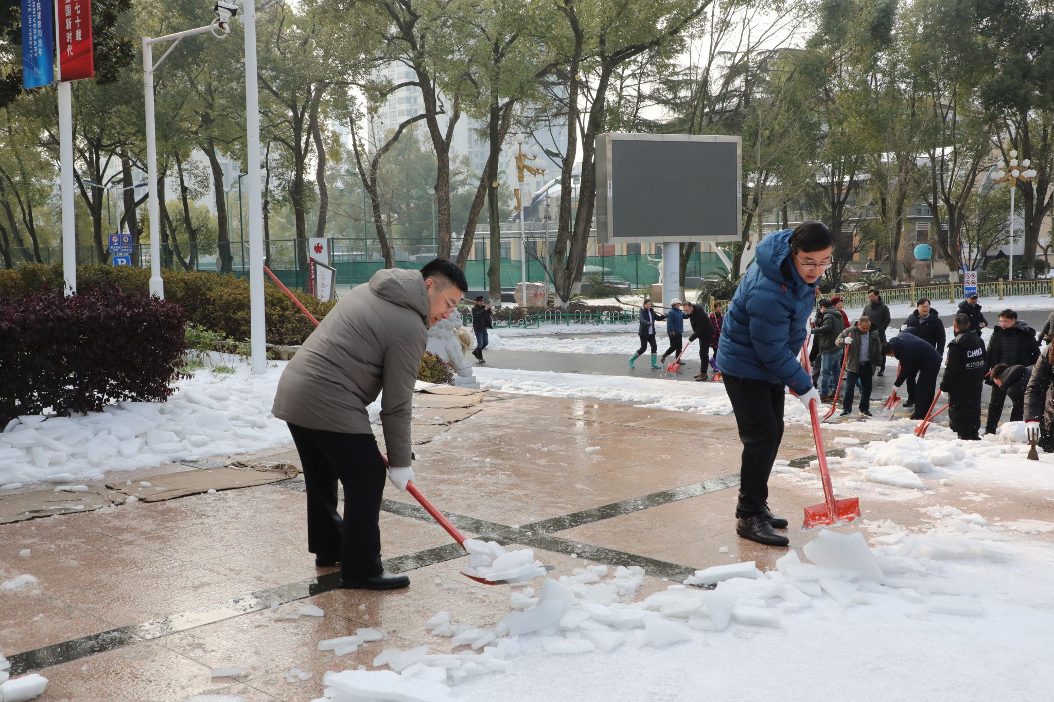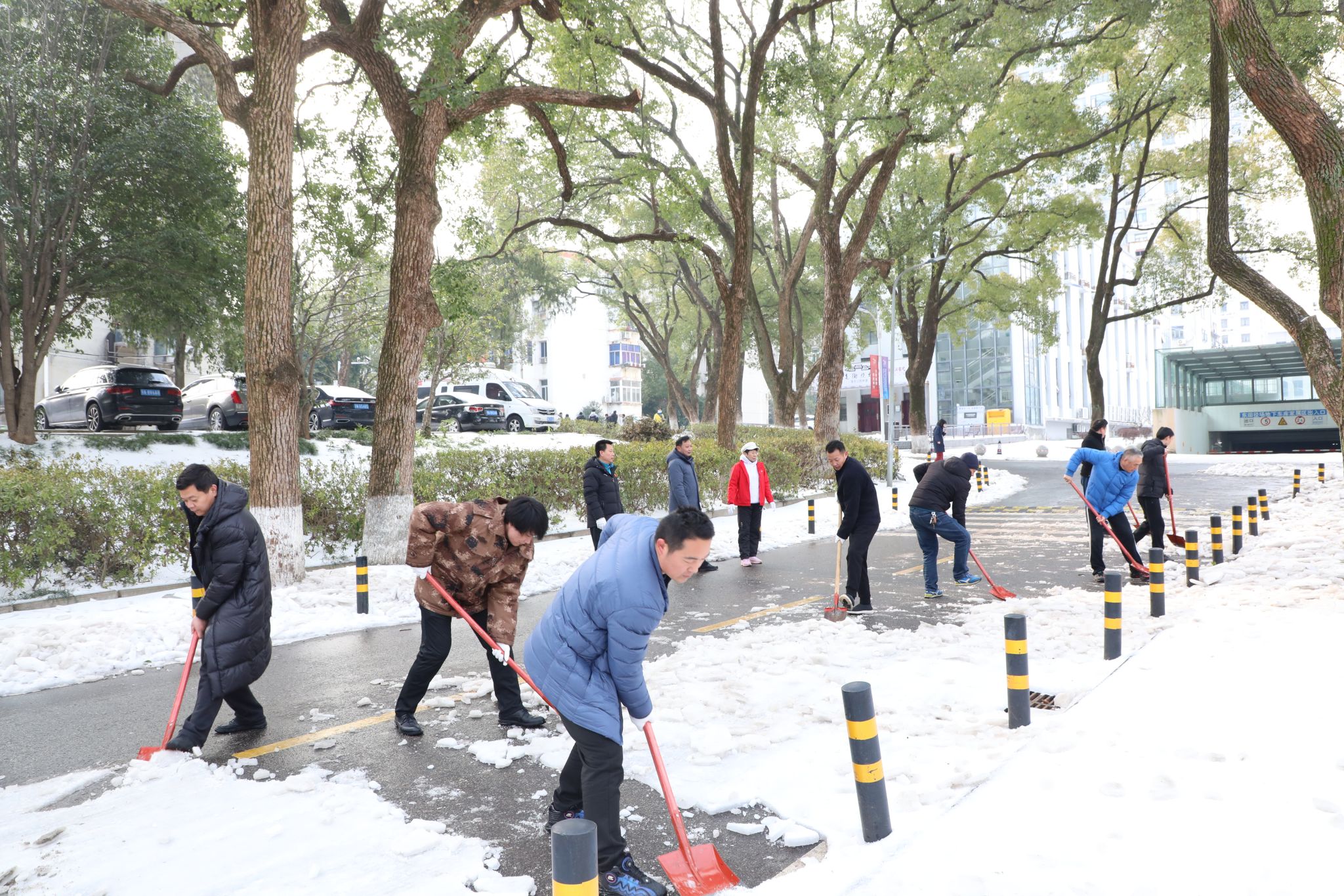 On February 25, with the leadership team of the Party Committee of WHSU taking the lead, all departments and schools were mobilized. Over 200 teachers and students pitched into the work. The 14 teams were assigned areas they should be responsible for and actively cooperated to shovel snow pellets and ice from several main roads, sidewalks, teaching areas, living areas, etc. of the campus, and check for all kinds of potential safety hazards.