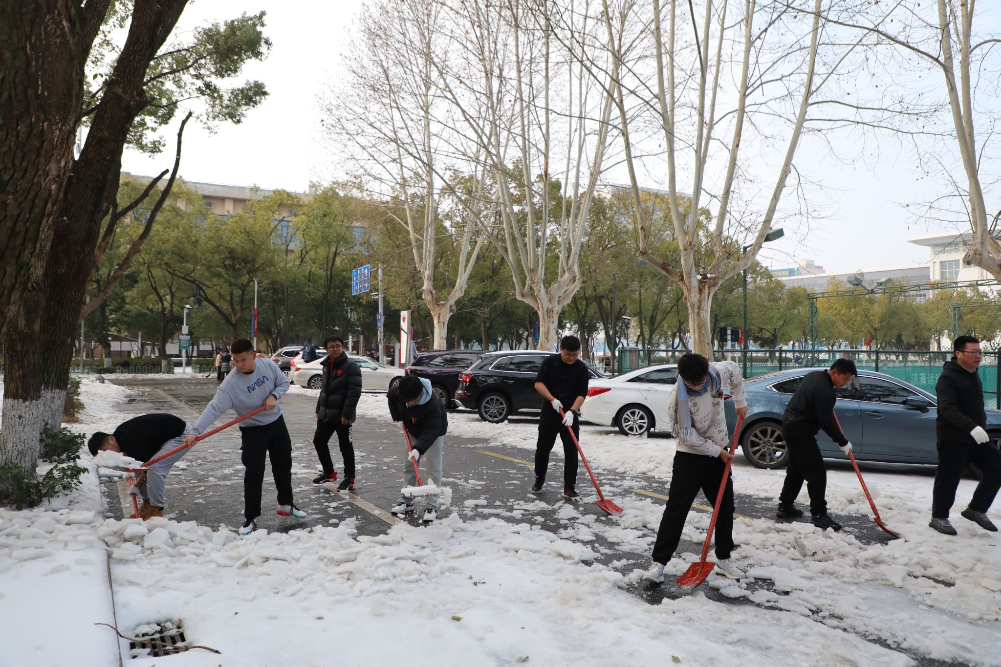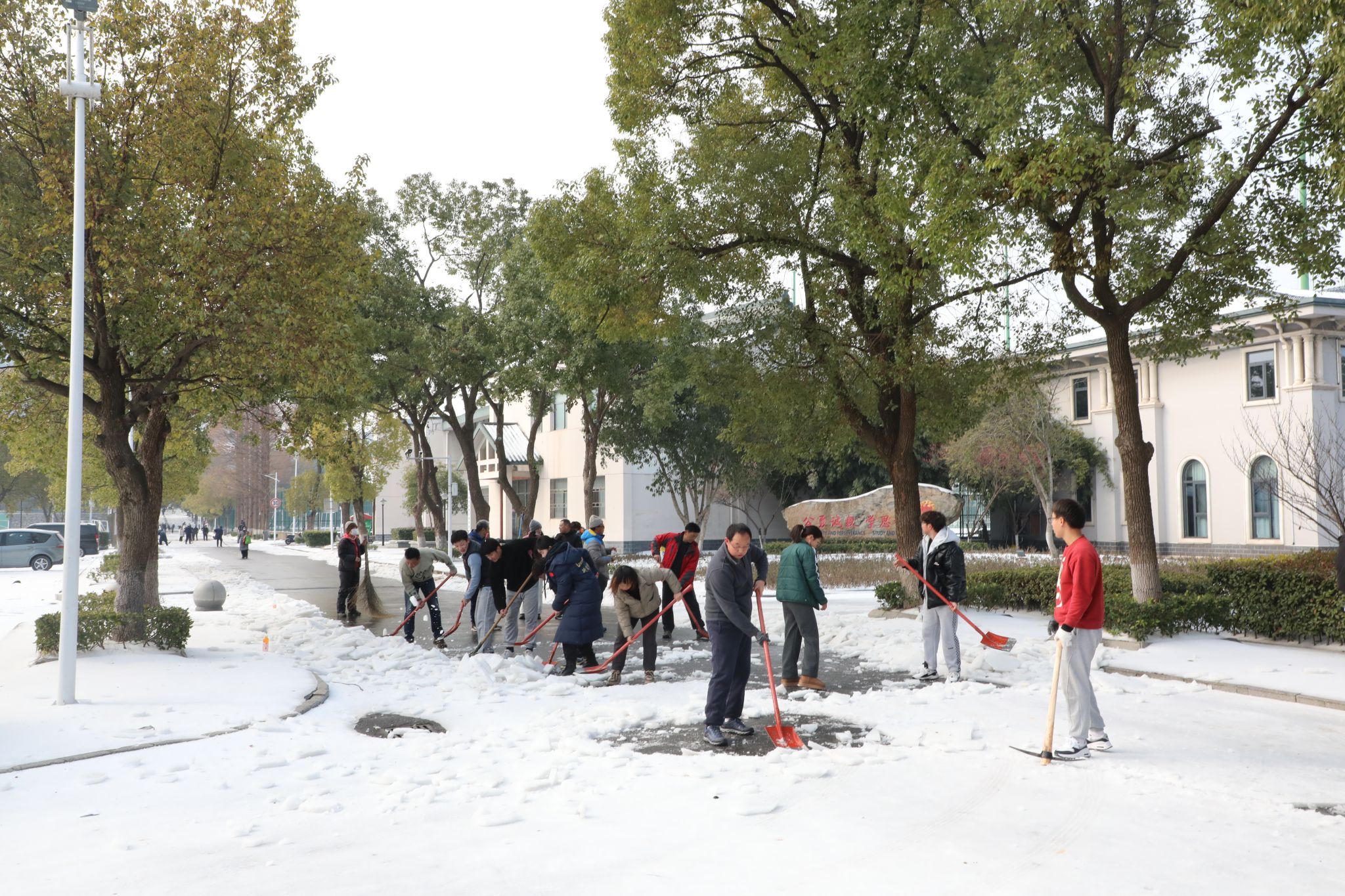 After a morning’s fight against snow pellets, main roads and road surfaces of teaching buildings, office buildings, dormitories, the family housing area, and other areas became basically clear. Preparations for the start of the new term are being carried out in order.