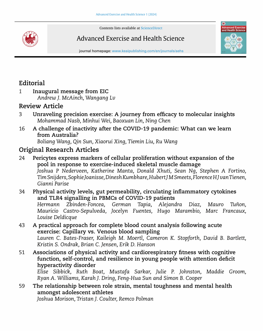 The first issue of “Advanced Exercise and Health Science (AEHS)”, the first English journal sponsored by Wuhan Sports University and organized and supervised by the journal office, was officially published in March 2024 after the journal name was checked and validated, the editorial board was recruited and formed, the submission system was set up, the manuscripts were invited globally, and the manuscripts were accepted by double-blind review. All the articles have been officially released in ScienceDirect, and are freely available to scholars from all over the world in open access.