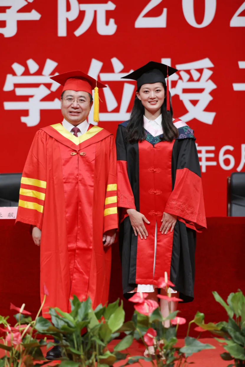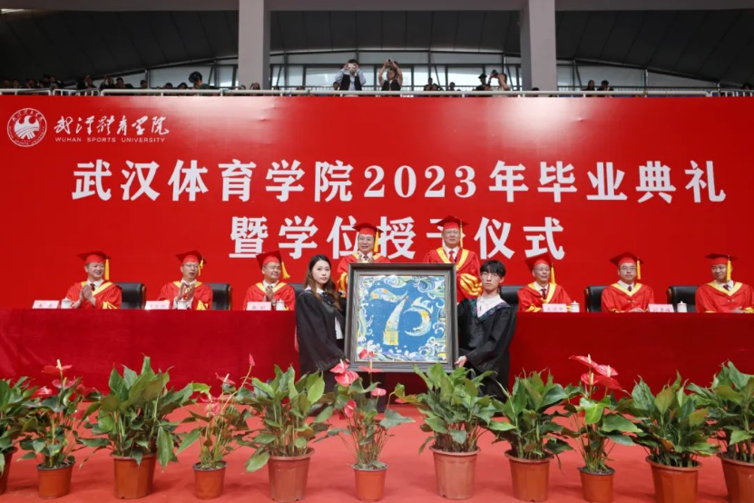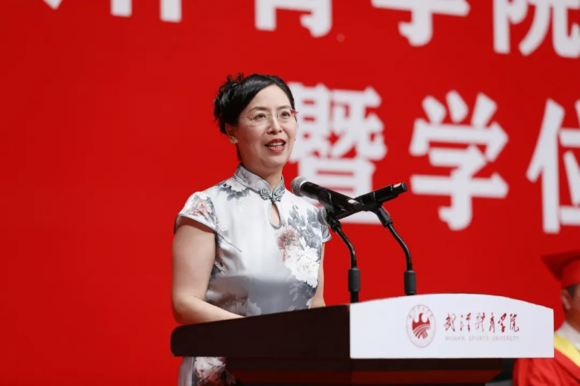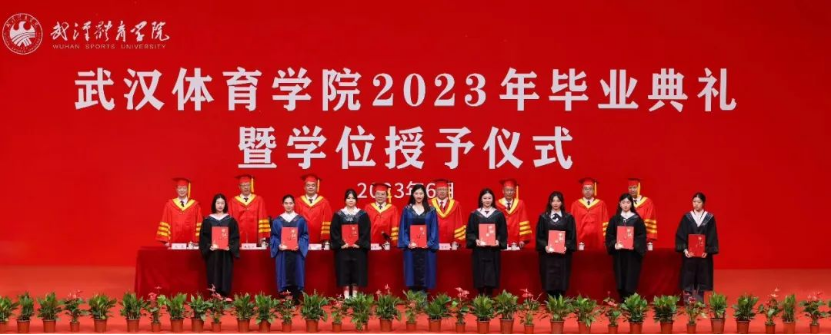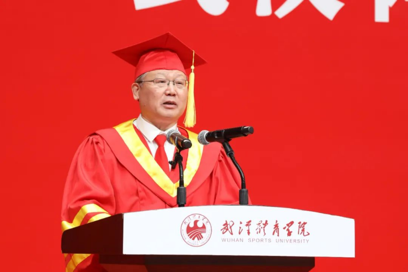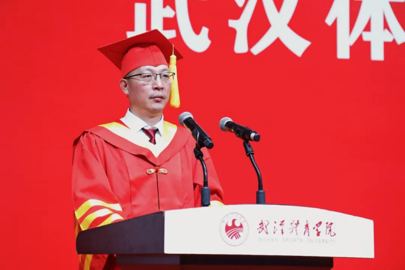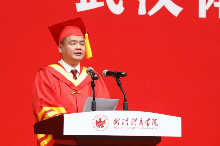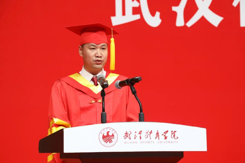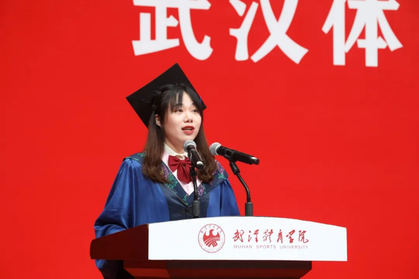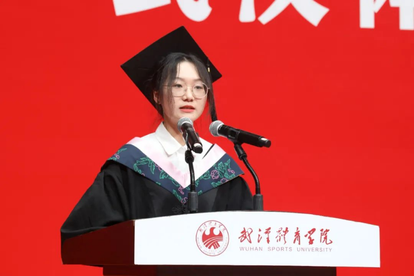 Kang Zixin from the School of Sports Medicine gave a speech on behalf of the class of 2023 bachelor graduates. She said that she still remembers the earliest days of entering the university, when everyone, excited and somewhat uneasy, visioned for all the possibilities of the future. Now standing at the intersection of graduation and looking back, they have been exploring all the way and working so hard to make self-improvement. As graduates who are setting off to embrace their careers, they should cultivate profound love for their family and country, foster an enterprising personality, and aim to be excellent young adults in the new era who are aspiring in work, daring to take responsibility, and willing to struggle and endure hardships. Living up to the times and their youth, the graduates should keep to their natural kindness and stride forward to pursue their dreams, so that their youth would bloom brilliantly in the great undertaking of building a modern socialist country in an all-round way.
