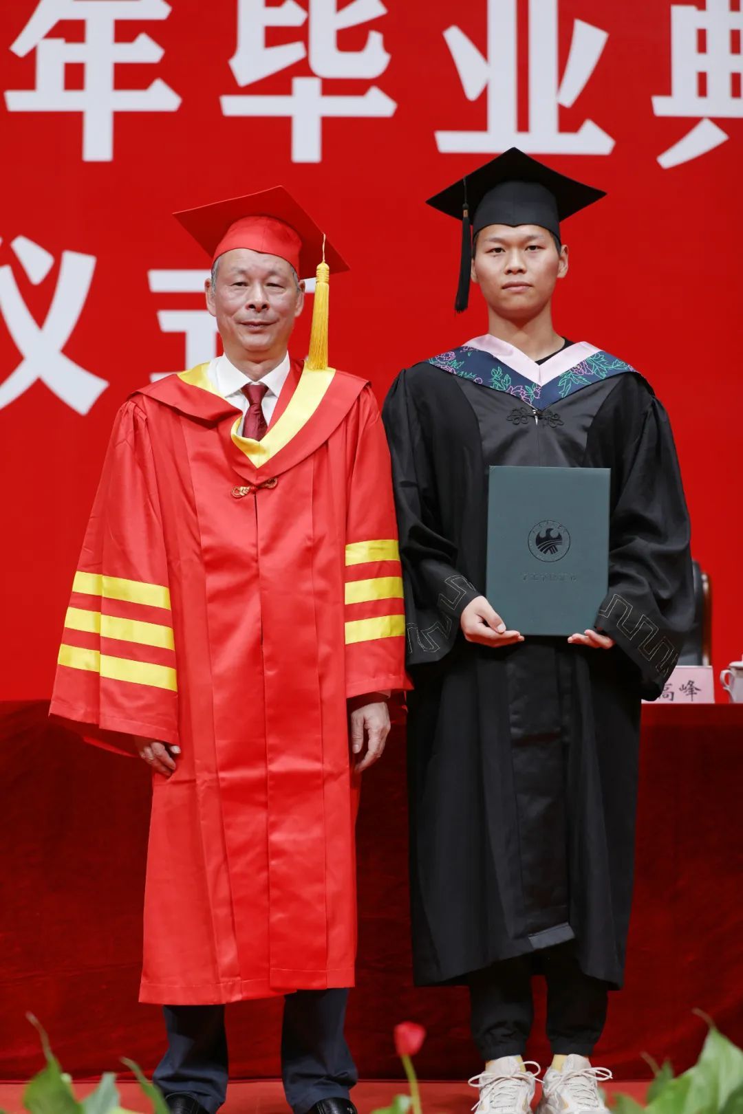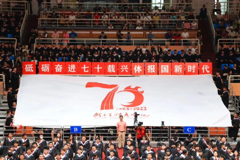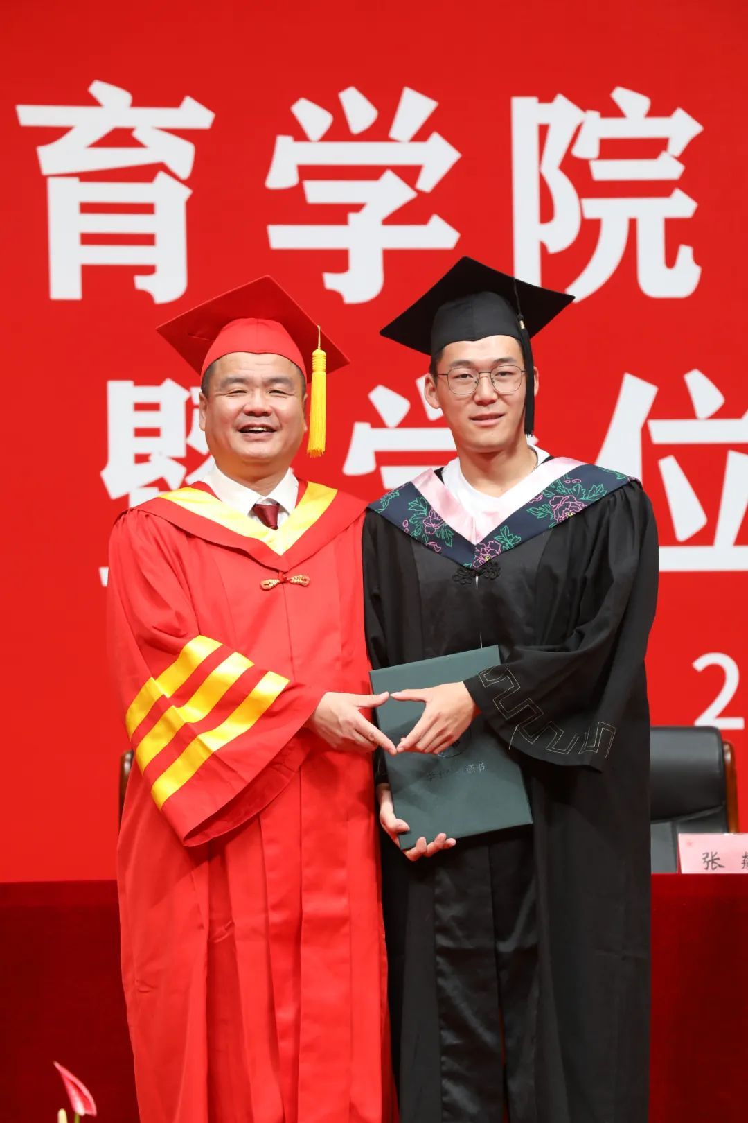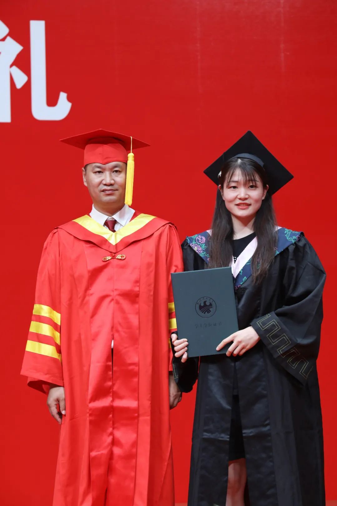 Kang Zixin from the School of Sports Medicine gave a speech on behalf of the class of 2023 bachelor graduates. She said that she still remembers the earliest days of entering the university, when everyone, excited and somewhat uneasy, visioned for all the possibilities of the future. Now standing at the intersection of graduation and looking back, they have been exploring all the way and working so hard to make self-improvement. As graduates who are setting off to embrace their careers, they should cultivate profound love for their family and country, foster an enterprising personality, and aim to be excellent young adults in the new era who are aspiring in work, daring to take responsibility, and willing to struggle and endure hardships. Living up to the times and their youth, the graduates should keep to their natural kindness and stride forward to pursue their dreams, so that their youth would bloom brilliantly in the great undertaking of building a modern socialist country in an all-round way.