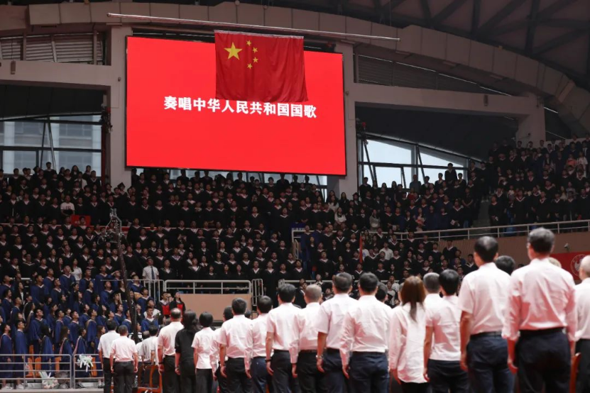 All the attendees stood and sang the Chinese anthem respectfully. Accompanied by the solemn anthem, the graduation and degree awarding ceremony kicked off.